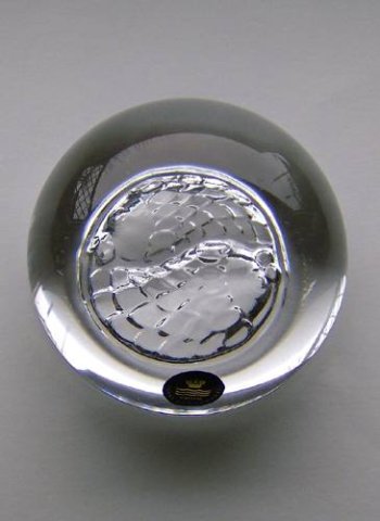 Halvkugleformet brevpresser fra serien "Astro" med indpresset stjernetegn "Fiskene" i bunden. (19. februar - 20. marts)
