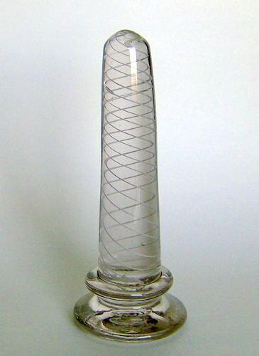 Glat pyramide med indlagt spiral og kraftig vulst over stor flad fod.