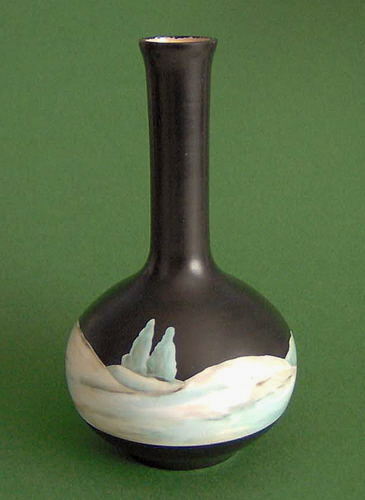 Vase, sort.Koldtbemalet blomsterdekoration som ikke er så slidstærk som de emaljebemalede.