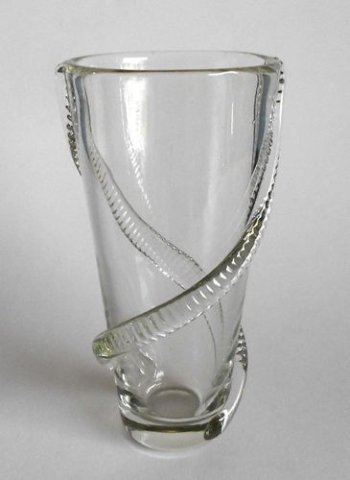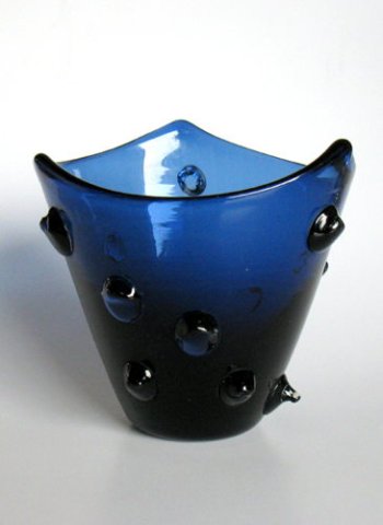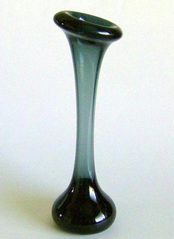 Knogleformet vase med massiv bund. Beskrevet i "Glas er liv" side 24, som vasen der heldigvis ikke kom i reel produktion.
