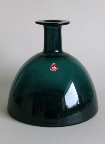 Vase med indsnævret hals og plan bund. Fra serien "Safirblå"