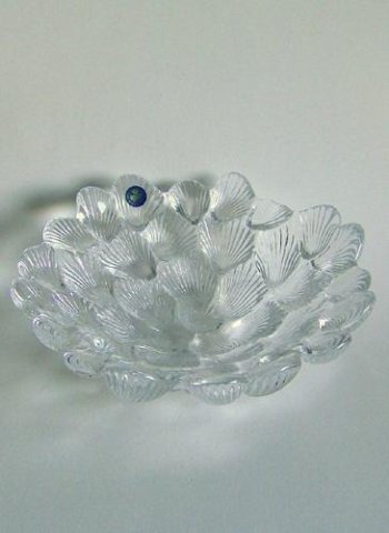 Centrifugeret krystalskål med navnet "Musling" sammensat af 40 muslingeskaller.