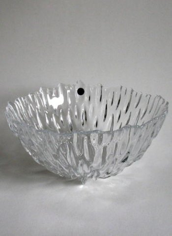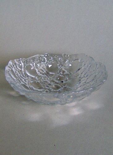 Centrifugeret krystalskål fra serien "Moon" med "ujævn" rand, og udvendig reliefmønster i form af et månelandskab.