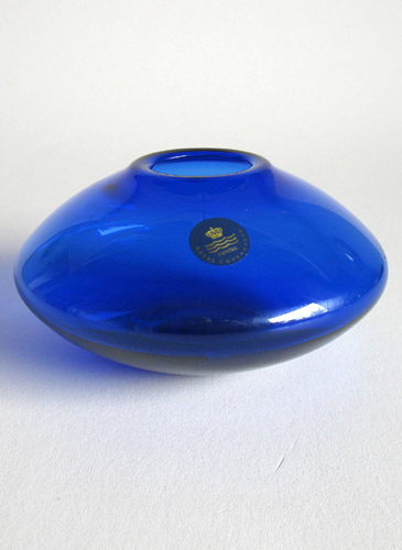 Lille flad blå diskosformet vase med lille åbning, fra serien "Flora"