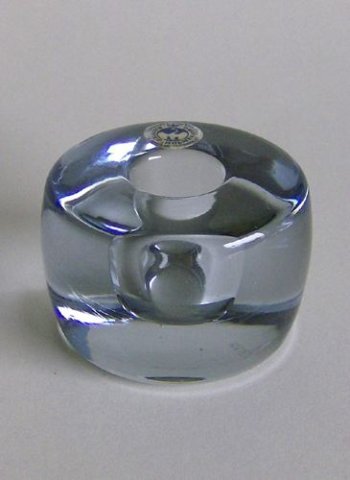 Lille massiv lysestage fra serien "Månesten" blæst i klart glas. Kuglet i bund.