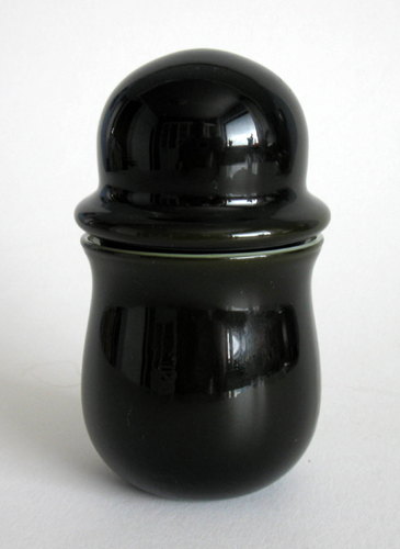 Sennepskrukke med låg fra serien "Køkken & Bord", blæst i hvidt opalglas med avocadofarvet overfang.
