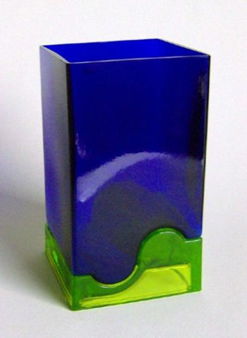 Firkantet blåt vase modul, på havgrøn bund, i serien "Puslerier".