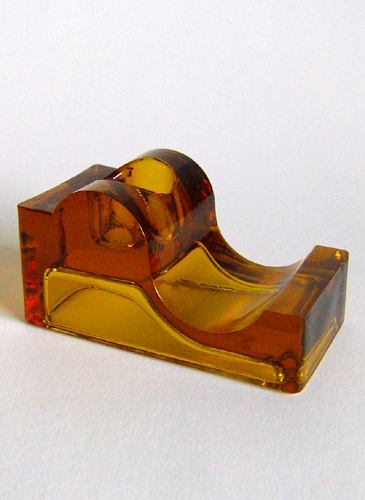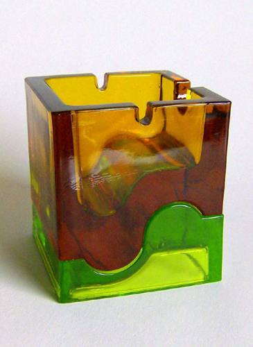 Firkantet ravgult askebæger modul med tre hakker til cigaretter eller cigarer, i serien "Puslerier".