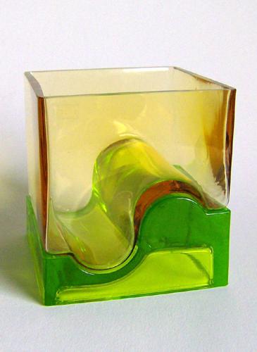 Firkantet ravgult modul til småting, på havgrøn bund, i serien "Puslerier".