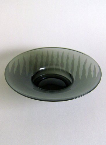Lille fad fra serien "Brise" med skrå sider og fordybning i midten, i mørkegrå farve med sandblæst motiv. (Påsat label med nr. 188)