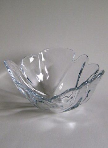 Stor centrifugeret krystalskål fra serien "Natura" formet som et abstrakt blad.