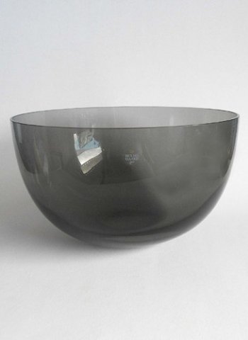 Stor halvkugleformet skål fra serien "Simplicity" med planslebet rand, blæst i smoke farvet glas.