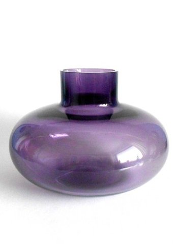 Stor kraftig fladtrykt vase fra serien "Simplicity" med cylinderformet hals og planslebet rand, Blæst i transparent violet glas.