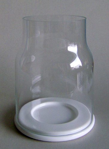 Stor bred Hurricane stage fra serien "Light Bottle" blæst i klart glas, med løs fod af hvidt opalglas.