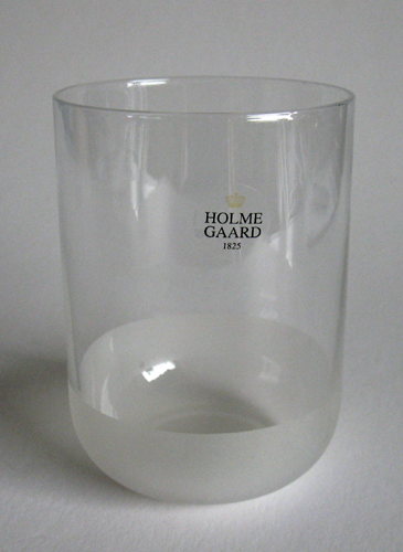 Krus/vandglas fra serien "Manhattan", cylindrisk med afrundet bund, nederste del af glasset matteret ved sandblæsning. Påsat HOLMEGAARD 1825 label