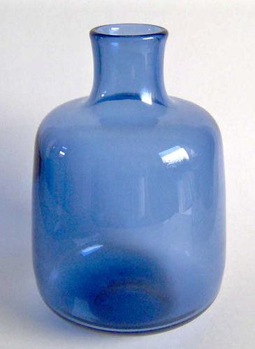 Rund bred let konisk vase med lille indsnævret hals. Kuglet i bund. Fra serien "Safirblå"