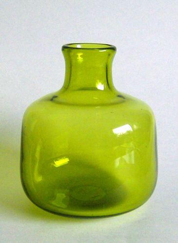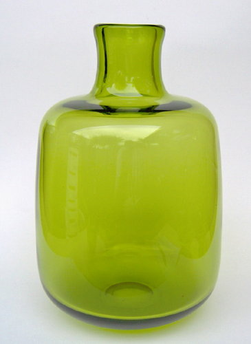 Rund bred let konisk vase med lille indsnævret hals. Kuglet i bund. Fra serien "Majgrøn"