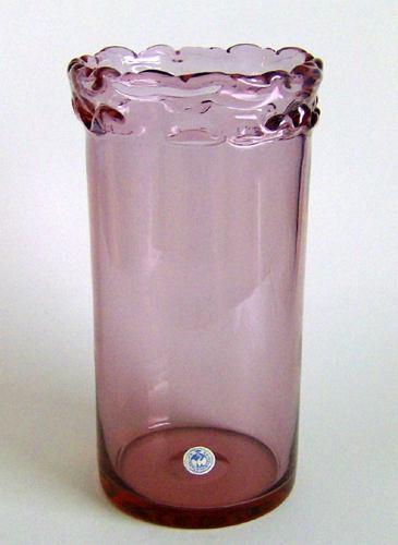 Høj slank cylindrisk vase fra serien "Rosamund" med stærkt mønstret bølget rand. Kuglet i bund.