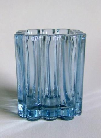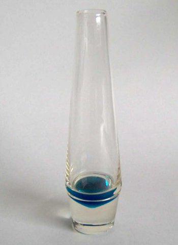 Konisk minivase fra serien "Solifleur" med omvendt konisk underdel, i bunden indlagt blå trekant.