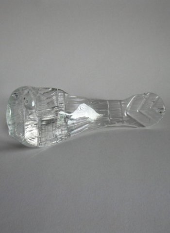 Figur i form af en stor krumbøjet fisk fra serien "Isflamme", i 24% krystal med mønster der ligner is.