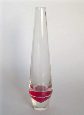 Mellemstor konisk vase fra serien "Solifleur" med omvendt konisk underdel, i bunden indlagt rubinrød trekant.