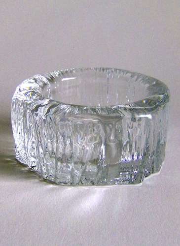 Rundt askebæger fra serien "Isflamme" med kraftig kant, i 24% krystal med mønster der ligner is.