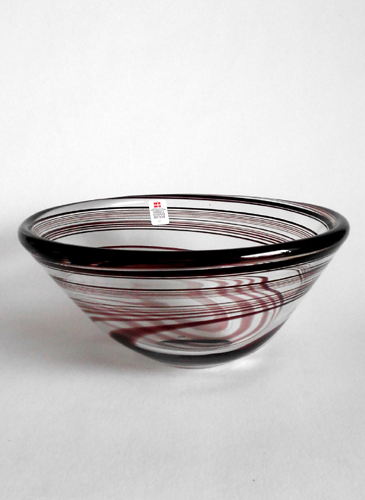 Kraftig konisk skål blæst i klart krystal med indlagt mørkviolet spiral. Planslebet bund.
