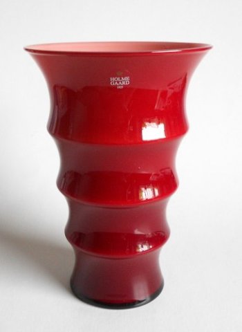 Litt.: Denne rødviolette vase er specielt fremstillet i anledning af Holmegaards 175 års jubilæum og er ikke vist i noget katalog. Vasen er senere produceret i flere størrelser og farver.