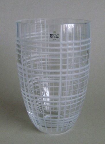 Vase fra serien "Lines" blæst i klart krystalglas, dekoreret med matslebne lodrette og vandrette linier samt planslebet rand. Påsat HOLMEGAARD 1825 label. I samme serie findes også en skål og et fad.