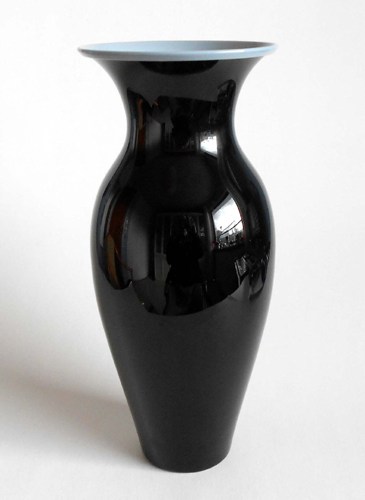 Mellemstor "Isis" vase med omlagt rand, blæst i gråt glas med sort overfang.