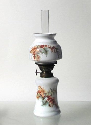 Natlampe med 8''' brænder, motivet udført med påbrændt overføringsbillede af bregneløv.