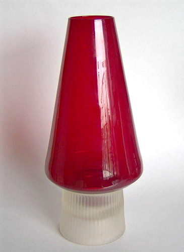 Hyggelampe til stearinlys, hvid matteret rillet underdel med rubinrød kuppel.