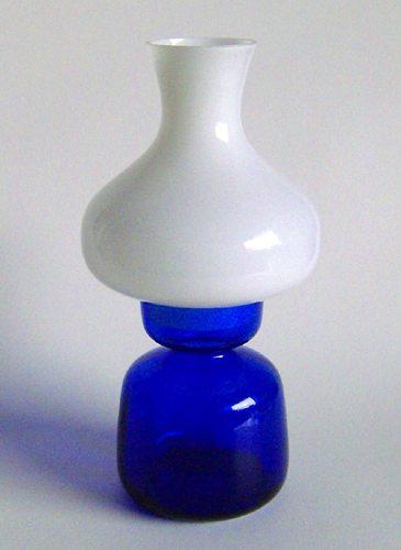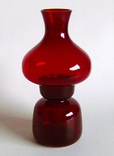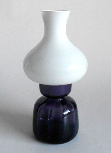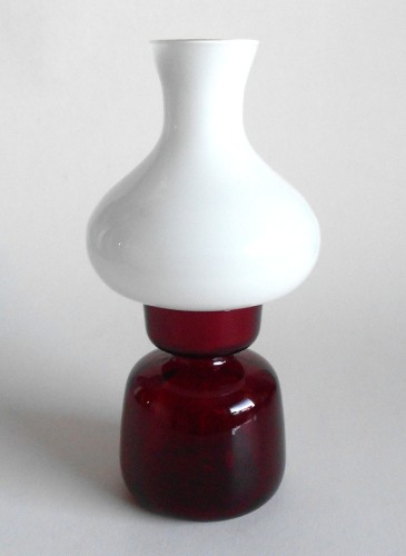 Fastblæst natlampe til fladbrænder. Findes også i en "hvidtglas" (klar) udgave.