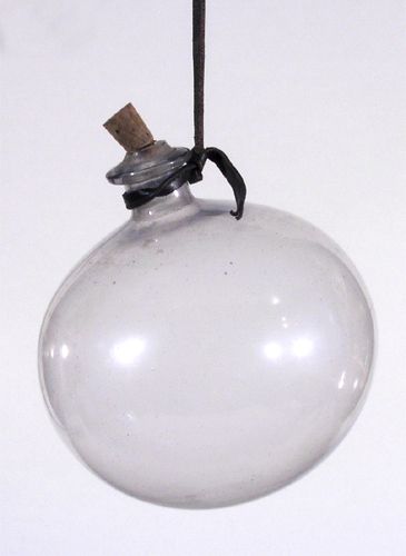 Skomagerkugle, Kugleformet glasbeholder med hals og omlagt rigle. Fyldes med vand og benyttet som linse i forbindelse med petroleums lampe, til at koncentrere og forstærke lyset.