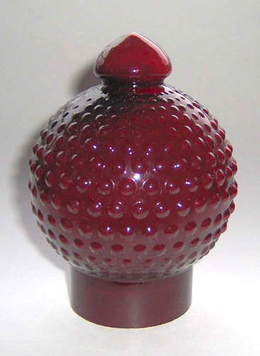 Illuminationsglas, fastblæst i nupret mønster og afsprængt. Alene produceret til Tivoli og er ikke vist i noget katalog. Findes i mange farver.