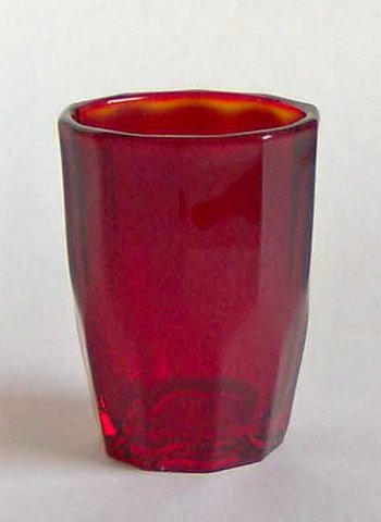 Presset vandglas med kryds facetter og planslebet standflade. Indtil 1910 fremstillet på Kastrup Glasværk, derefter på Fyens Glasværk. Fremstillet i rødt, grønt, søblåt, brunt og hvidtglas.