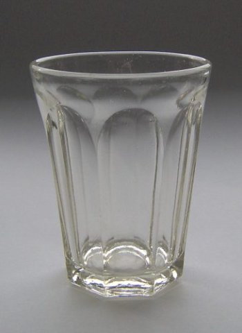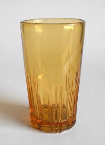 Presset vandglas med krydsfacetter og planslebet standrand. Indtil 1910 fremstillet på Kastrup Glasværk, derefter på Fyens Glasværk. Fremstillet i grønt, søblåt, brunt, rødt og hvidtglas. De farvede udgaver tilskrives