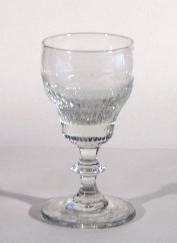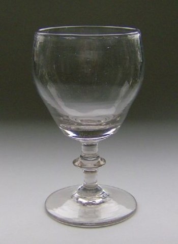Vinglas med tøndeformet kumme, på stilk med knap.