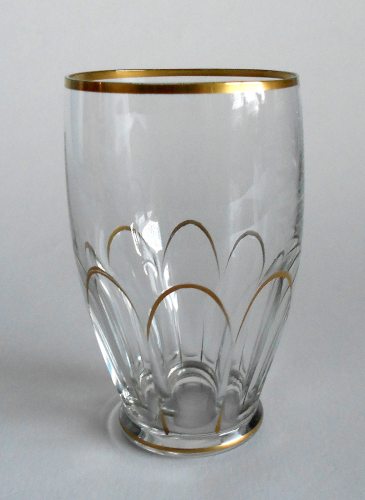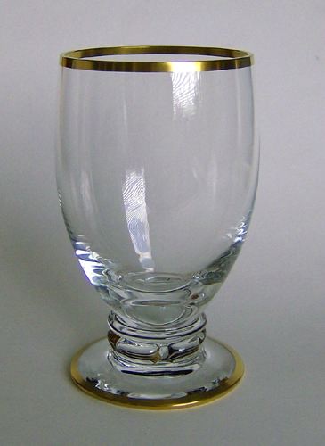 Øl eller vandglas fra servicet "Windsor" med facetslebet underdel samt guldstaffering på randen, foden og omkring facetbuerne.