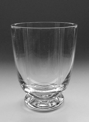 Ølglas fra servicet "Gråsten" med kraftig ringfod, dekoreret med lodrette slibninger, en bred mat streg med en smal på hver side fire gange.