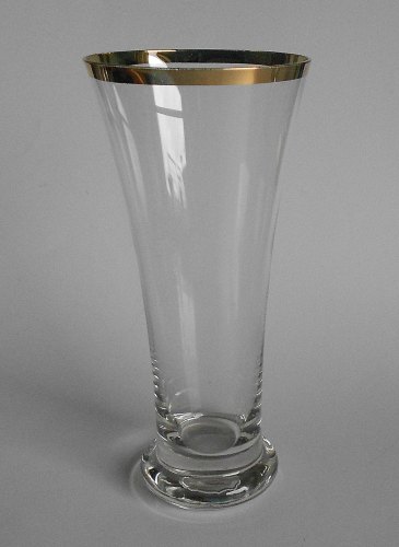 Højt udsvajet pilsnerglas på kraftig massiv fod og forgyldt rand.