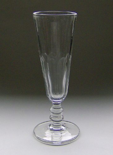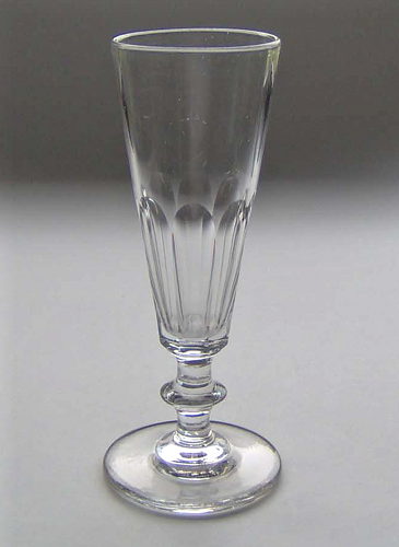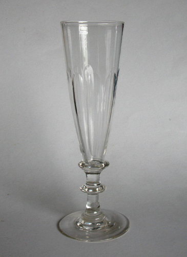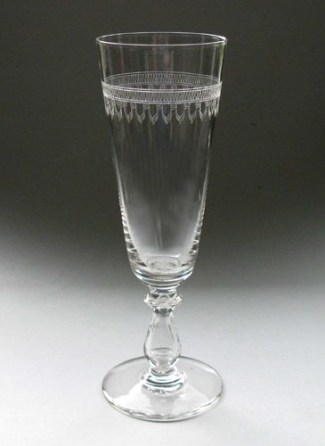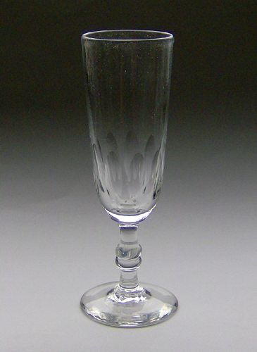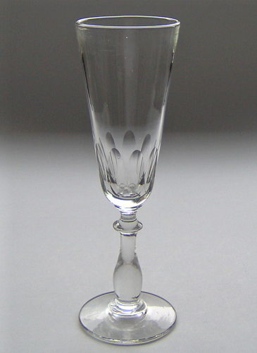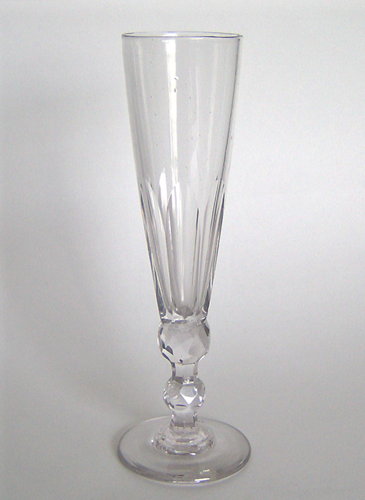 Champagnefløjte, del af servicet "Anglais" Halvfacetteret spids kumme på stilk med knap og skarp mollex.