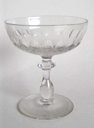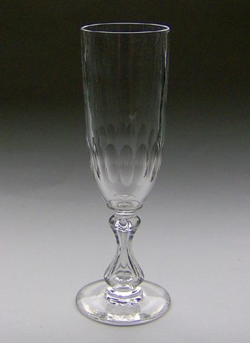 Champagnefløjte med halvfacetteret kumme og to diamantslebne knapper på stilken.
