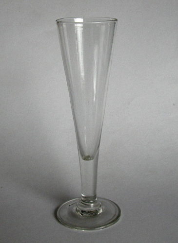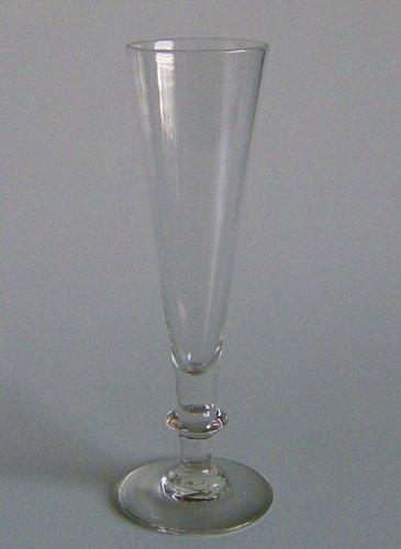 Champagnefløjte med slank spids glat kumme. Anhæftet i bund.