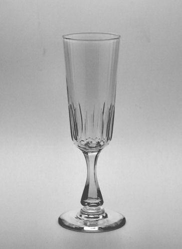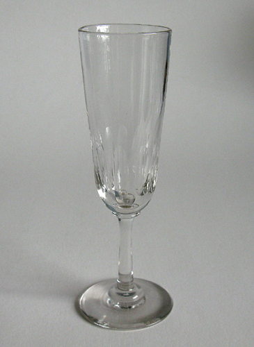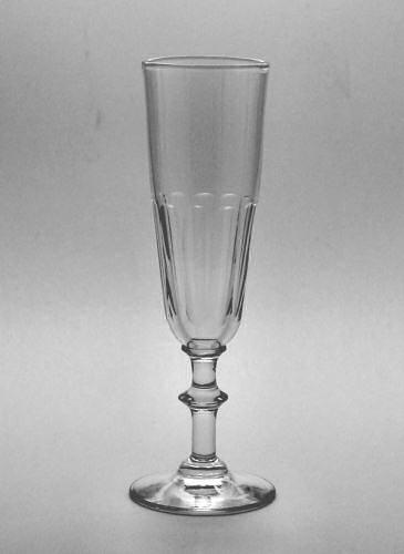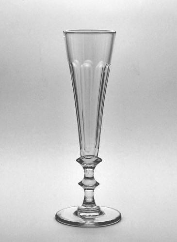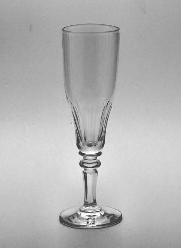 Champagnefløjte, egentlig del af servicet "Berlinois". Rundbundet, halvfacetslebet kumme på stilk med knap på flad fod. Udbydes første gang af Holmegaard i 1867, endnu i katalog i 1930erne. Produceret på alle danske værker; de enkelte værkers glas kan ikke skelnes fra hinanden.