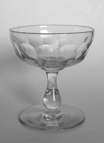Champagneskål fra servicet "Fr.VII" med facetslibning om kummen på balusterformet stilk.