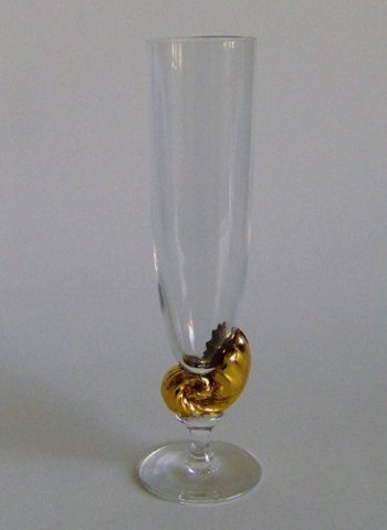Champagnefløjte fra servicet "Neptun". Rundbundet glat kumme på forgyldt sneglestilk med knap på flad fod. I bunden graveret "1999 * 2000", produceret i forbindelse med årtusindskiftet.