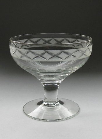Champagneskål eller isglas fra servicet "Ejby" med matslebet bort med krydser om kummen.