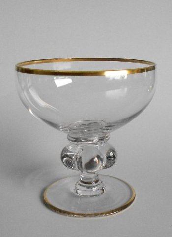 Champagneskål eller isglas fra servicet "Gisselfeld" med guldstaffering på rand og fod.