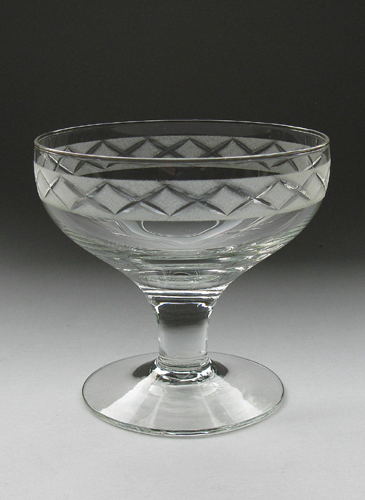 Champagneskål/isglas fra servicet "Canada" blæst i klart glas. Servicet er mest kendt i smoke farvet glas.